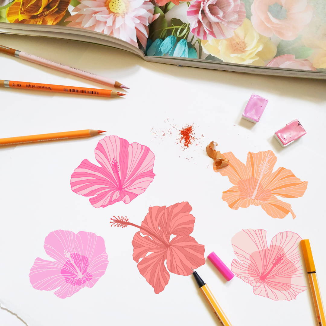 Not only are Tiare Hawaii pieces printed, dyed, and constructed by hand, we often draw our patterns by hand to add a pop of personality and uniqueness. We work with graphic designers to refind each print, playing with color, shape, and scale to find the right match for each piece.